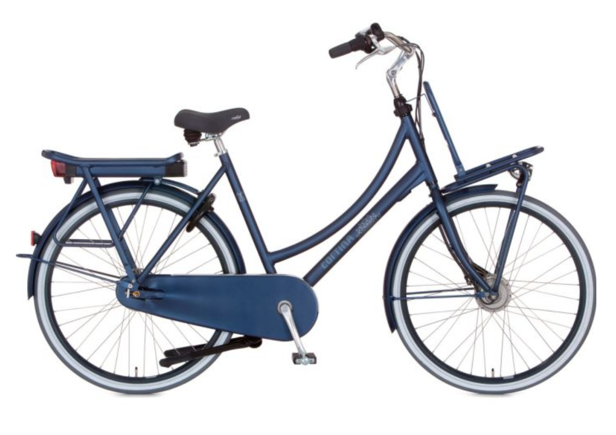 Omdat ik in de stad wel echt een voordrager wilde, vielen er al 2 af. Maar zelfs dat werd nog besproken met de heren van de montage, of er niet toch iets mogelijk was. Gelukkig fietsten de niet-voordrager fietsen voor mij minder fijn. De Cortina bleef. En was stiekem ook wel erg mooi. Omdat de niet elektrische veel te laag was, kreeg ik de elektrische mee. Voor de zekerheid legde de meneer ook even uit hoe dat werkte. Hoewel ik bij binnenkomst nog heel hard riep ‘NEE… elektrisch!?! Ik ben toch jong en gezond?’ kwam er een dikke fietsbrug aan.. Klein beetje trapondersteuning aan en vloog er (met minimale harde buiken) tegenop. Oké.. vliegen is een beetje een overstatement, maar het ging zoveel beter dan zonder!