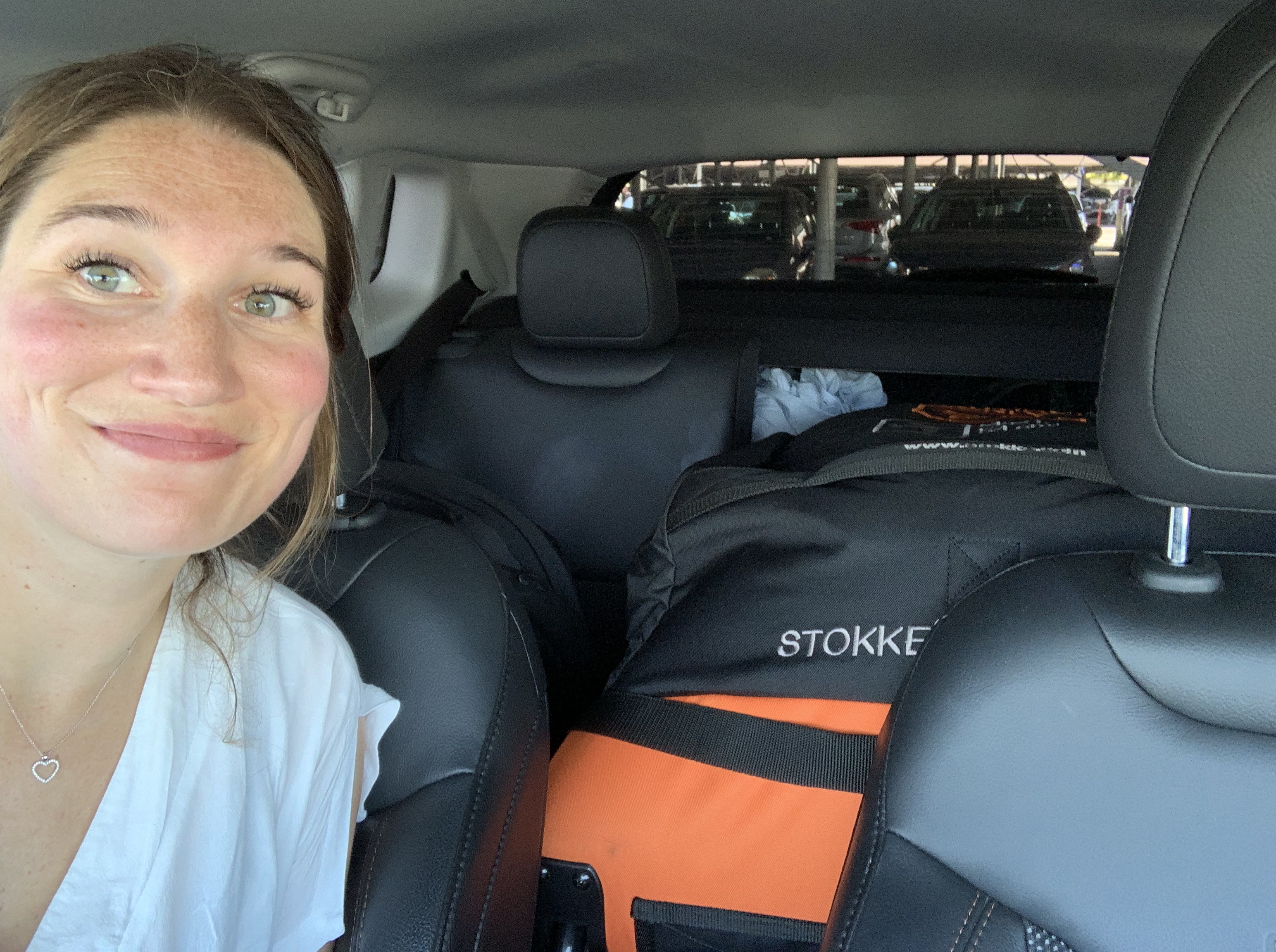 Aangekomen bij de autoverhuur is het een feestje. Voor ons dan, want ook hier mogen we met priority vooraan in de rij.. is de wachttijd met een uurtje verkort! Gelukkig maar, want nadat de meneer me geadviseerd heeft om toch echt een grotere auto te nemen komt er luid gekrijs uit de draagzak, hij is het zat! We lopen naar de auto, helaas nog niet gewassen. Vanwege de krijsende baby krijgen we een andere mee, zodat we wederom niet hoeven te wachten. Onze witte Jeep Compas wordt volgestouwd door de man terwijl ik wederom borstvoeding geef.. de kleine man is dorstig met alle warmte. En poept weer langs de luier alles vol! Outfit 3 gaat aan! Met extra hydrofiele doek in de Maxicosi ter bescherming. We zijn op weg…