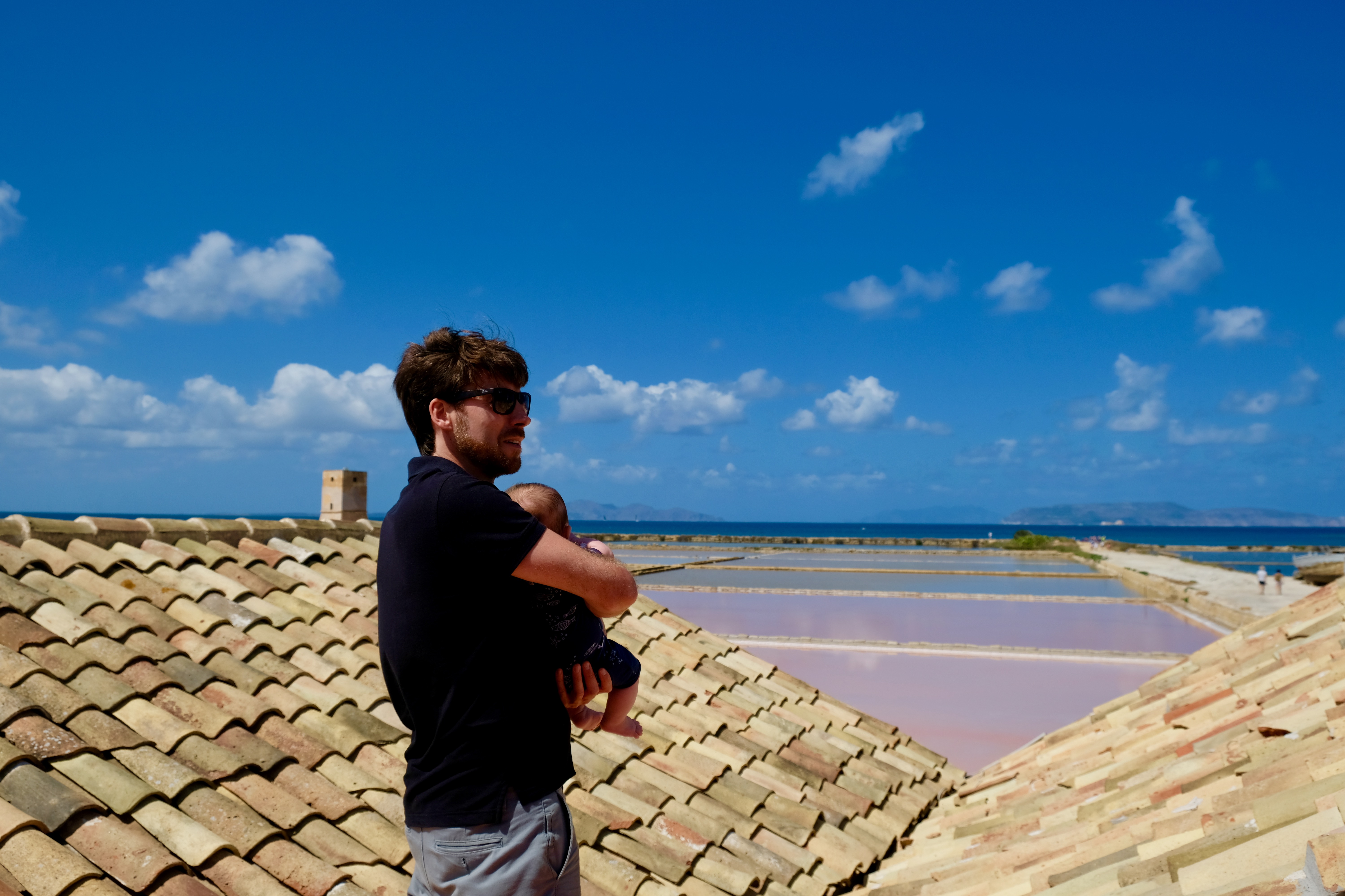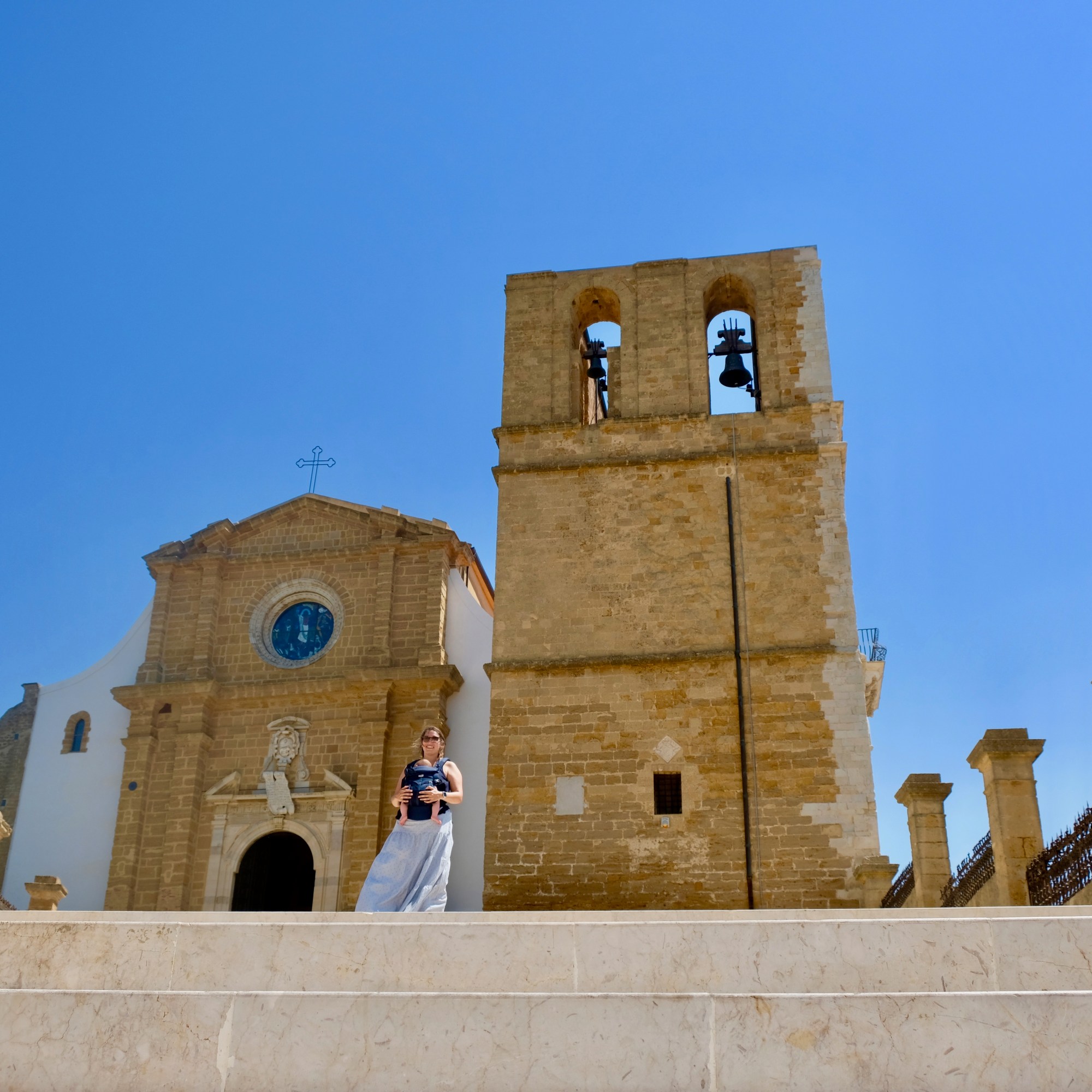 De volgende ochtend besluiten we het oude centrum van Agrigento te verkennen. We klimmen naar de Duomo. De stad ligt op een helling, en in totaal lopen we bijna 5km, en het is best warm, met Siebe in de draagzak. Het uitzicht is het waard, en op de weg naar beneden stoppen we bij een Osteria voor een uitgebreide lunch. Funfact: in de Dom heeft onze zoon weer een van zijn talenten tentoongesteld, en mocht in de Sacristie verschoond en verkleed worden.