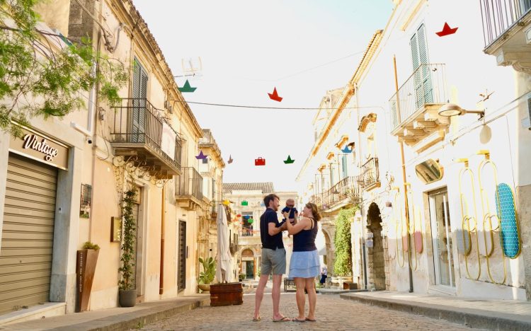 De laatste dag lopen we in de ochtend naar het oude fort. Je kunt veel zeggen, maar met een kind ben je ineens uren eerder op pad. Het licht is beter voor foto’s en ook de temperatuur is beter te doen. Allemaal dankzij ons levende wekkertje. Om 10:00 moeten we uitchecken, en dan hebben we al van alles gezien. We laden de kinderwagen weer vol en zoeken de auto op. In plaats van nog een stad rijden we richting Noto, maar slapen 1.5km buiten het centrum in Villa Landolina, met zwembad.