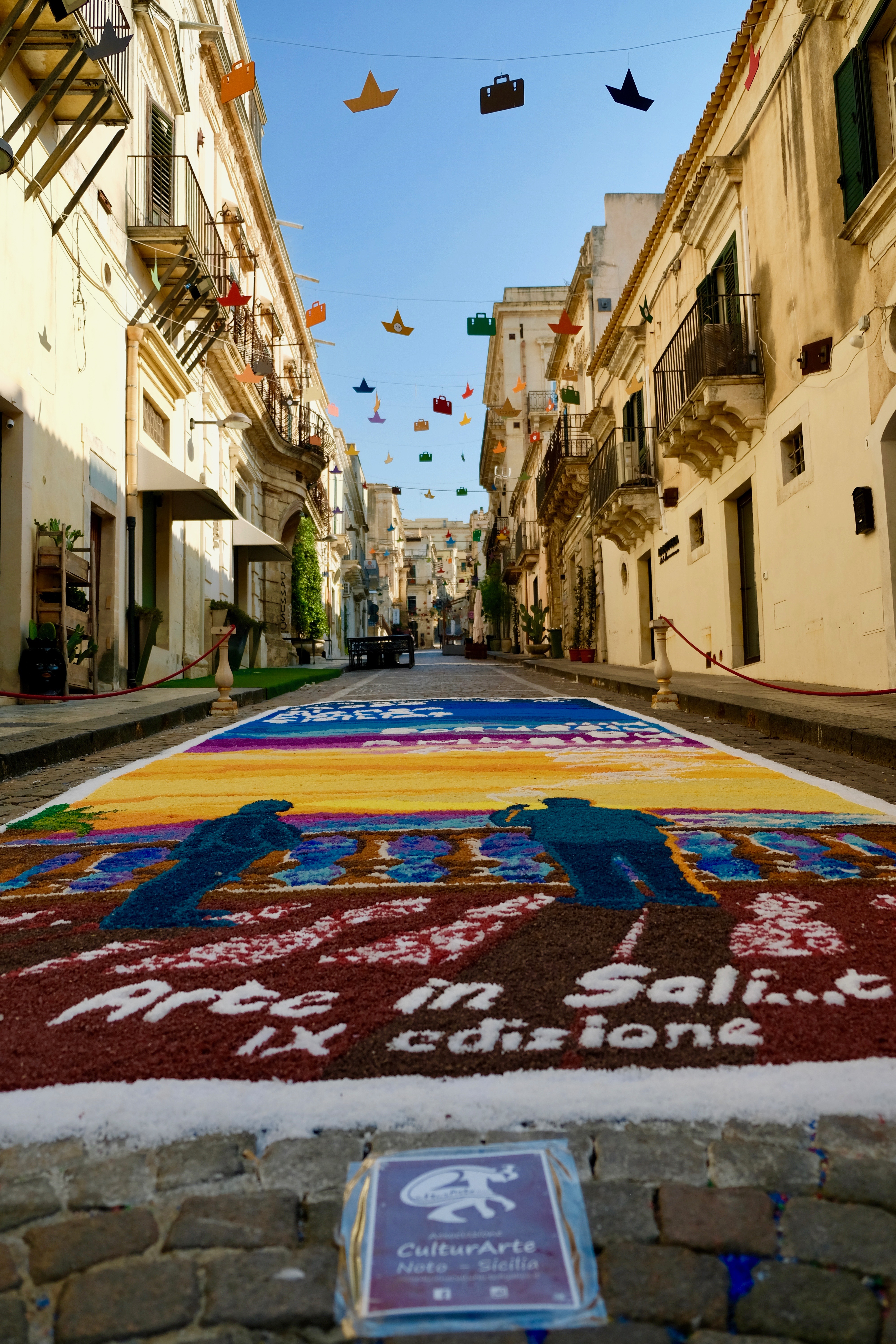 Vanochtend zijn we in alle vroegte, na een lekker ontbijtje, richting Noto gegaan, gewapend met de kinderwagen. De temperatuur zorgt ervoor dat de draagzak niet lang prettig is, omdat Siebe dan ongeveer geroosterd wordt. De stad is na een verwoestende aardbeving 12km verderop herbouwd met een principe. Op iedere hoek van de straat krijg je een panorama, overal is zon en de stad bestaat uit 3 delen. Bovenin de adel, dan de geestelijken, en dan de gewone mens. We slenteren langs prachtige barok gebouwen, en alles heeft tierelantijntjes. Er is ook een kunst iets; hier en daar liggen op straat platen in zout gelegd. Zie foto voor verduidelijking. De temperatuur stijgt van 24 naar 29 graden in 1.5uur, dus we houden het voor gezien. Terug duiken we in het zwembad en genieten van verkoeling. De lokale pizzeria stemt in met afhaalpizza’s en nadat we de tassen gepakt hebben en Siebe in bed hebben gelegd steken we de Citronella kaarsen weer aan voor een romantische afsluiting van de vakantie… mét pizza!